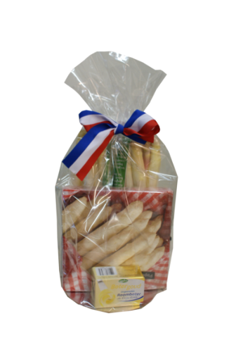 Cadeautip!Voor een leuk kado kunt u bij ons in de winkel een leuk asperge / aardbeien pakket samen stellen. Hiervoor hebben wij leuke rieten manden, brabantse doosjes of een kado verpakking waar u bijvoorbeeld asperges, sauzen, eitjes, aardbeien, of wijn in kunt doen. Na het samen stellen pakken wij het in met een cellofaan zodat u een leuk kado heeft.